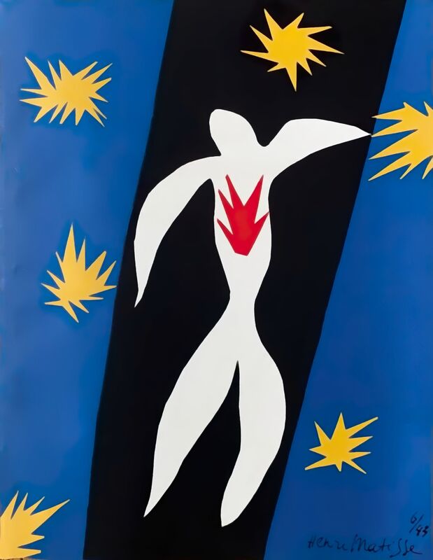 89 Henri Matisse Fall Of Icarus Excelente. Matisse's fall of icarus was painted in 1943. The bursts of the yellow sunlight against the rich blue of the sky are striking. The beautiful, bold colour could be interpreted as matisse's.